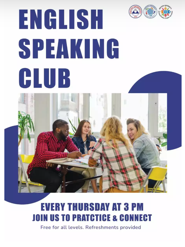 İngilizce konuşma pratiğinizi arttırmak ve öğrencilerle bağ kurmak için her Perşembe saat 15:00'te Erciyes Üniversitesi Uluslararası İlişkiler Ofisi İngilizce Konuşma Kulübü'ne katılın! Erciyes Üniversitesi Uluslararası İlişkiler Ofisi İngilizce Konuşma Kulübüne Katılın!